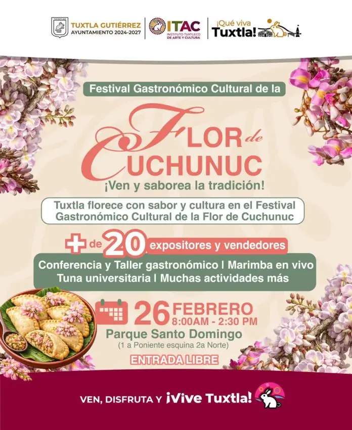 El Ayuntamiento de Tuxtla Gutiérrez 2024-2027, a través del Instituto Tuxtleco de Arte y Cultura (ITAC), invita a las familias chiapanecas a disfrutar del Festival Gastronómico Cultural de la Flor de Cuchunuc. Bajo el lema “¡Ven y saborea la tradición!”, este evento busca resaltar la riqueza culinar