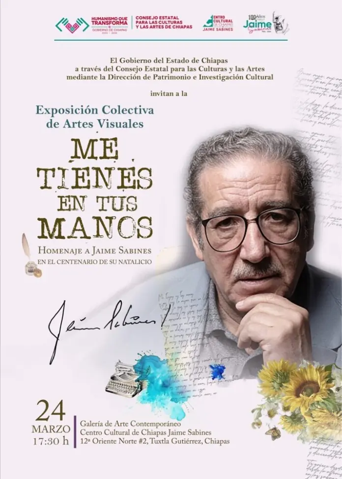 En el marco del centenario del natalicio de uno de los poetas más queridos y trascendentales de México, el Gobierno del Estado de Chiapas, a través de CONECULTA, invita a la comunidad a la inauguración de la Exposición Colectiva de Artes Visuales “Me tienes en tus manos”. Este evento busca honrar el