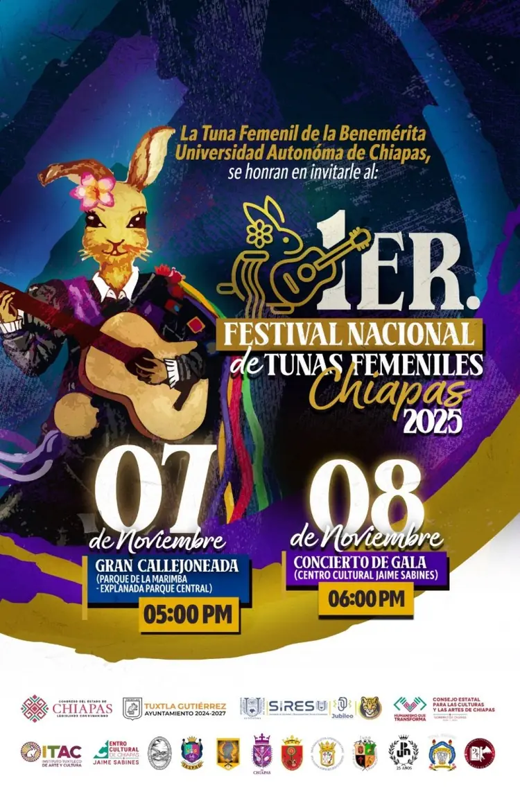 ¡La música, el talento y la alegría femenina llegan a Tuxtla Gutiérrez! La Tuna Femenil de la Benemérita Universidad Autónoma de Chiapas (UNACH) invita al 1er Festival Nacional de Tunas Femeniles Chiapas 2025, un evento que celebrará la tradición universitaria, el arte y la hermandad musical entre a